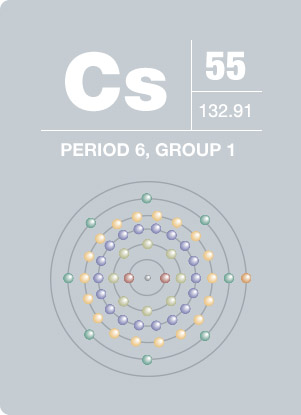 Cesium, also spelled caesium, is a slivery-gold metal that is liquid at or around room temperature. This element’s name is derived from the Latin caesius, meaning sky blue. Cesium reacts explosively with water. Cesium hydroxide is a very strong base that can rapidly etch the surface of glass. The most widespread use of cesium is in drilling fluids for the oil industry which mitigates the necessity of toxic suspended solids in drilling fluids. Cesium is also used in atomic clocks, in particular its isotope of atomic weight 133 (Cs-133).