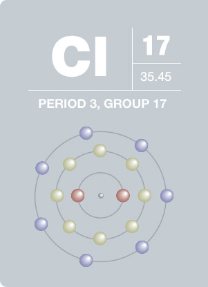 Chlorine is a greenish yellow gas that combines with nearly all elements. In nature, chlorine is found as the chloride ion that is deposited in the earth or dissolved in the oceans. High concen- trations of chloride are found in the Dead Sea, and about 1.9% of the mass of the world’s sea water is chloride. Chlorine gas was used against humans in World War I as a killing agent. Chlorine is an ingredient in many everyday items and is an important chemical in water purification, disinfectants, and bleach.