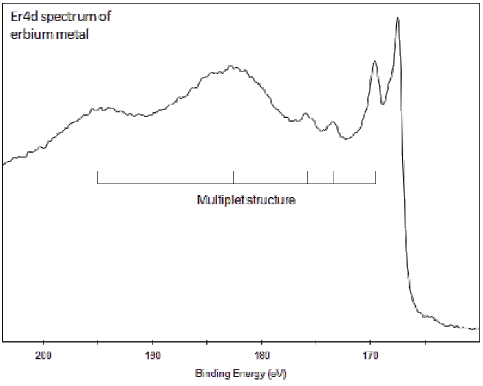 - Erbium metal, for example, has at last 6 peaks in the Er4d region.
