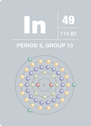 Most elements were discovered while scientists searched for other materials, and indium is no exception. This very soft, silvery-white metal has a bright luster and emits a high-pitched “cry” when bent. One of the first major applications for indium was as a coating for bearings on high-performance aircraft during World War II. Later, tin-doped indium oxide, transparent and colorless in thin films, became a main component in liquid crystal, flat panel and plasma displays. Not surprisingly the demand for indium has risen dramatically, and lower cost alternatives such as carbon nanotubes and conducting polymers are being studied.