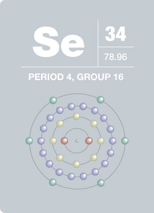 Selenium was discovered by Jöns Jakob Berzelius 1817 and derives its name from the Greek word “selene”, meaning moon. Although selenium is naturally found in a few rare minerals, it is primarily produced as a byproduct of copper refining. Selenium exists in two crystalline forms: crystalline monoclinic selenium is a deep red, while crystalline hexagonal selenium, the most stable form, is metallic gray. Selenium’s photovoltaic and photoconductive properties contribute to its use in photocopying, toning of photographic prints, photocells, light meters, and solar cells. A semi-conductive material below its melting point, selenium is also used in electronic applications.