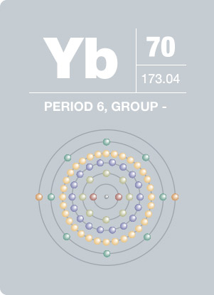Ytterbium is soft and ductile with a bright slivery luster. Discovered by J. de Marignac in 1878, ytterbium was named after the Swedish town Ytterby, in which it was discovered. Ytterbium occurs in nature with other rare earth metals in a number of rare minerals and is commercially recovered principally from monazite sand. Ytterbium exists in seven stable isotopes, of which one (169Yb) has been used as a substitute radiation source for an X-ray machine when electricity is not available. Ytterbium may be employed to improve of the mechanical properties of stainless steel, such as strength and grain refinement.